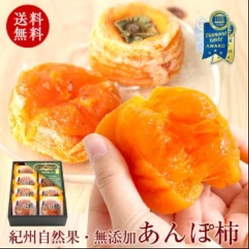 ![]() | あんぽ柿 硫黄を用いて渋柿を薫蒸したものです。 果肉はゼリーの様にやわらかです。 |